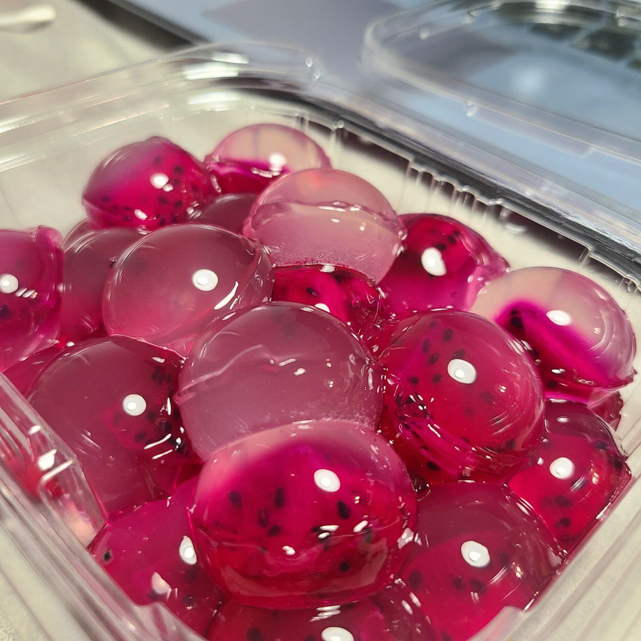 第五次蒟蒻粉50g+糖60g+水390g+檸檬汁<10cc硬度夠!太甜!可以成球